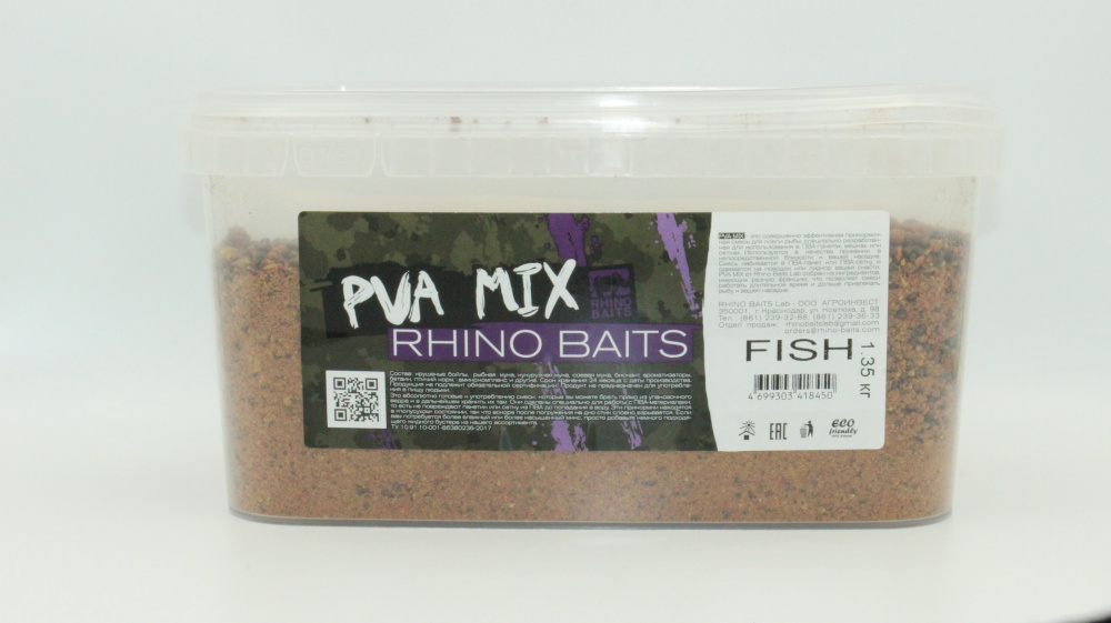 PVA MIX -это совершенно эффективная прикормочная смесь для ловли рыбы , специально разработанная для использования в PVA пакетах ,мешков или сетки . Используется в качестве приманки ,в непосредственной близости к вашей насадке . Смесь набивается в ПВА- пакет или ПВА-сетку .и одевается на поводок или лидкор вашей снасти. PVA MIX от RHINO BAITS LAB собран из ингредиентов ,имеющих разную фракцию ,что позволяет смеси работать длительное время и дольше привлекать рыбу к вашей насадке .