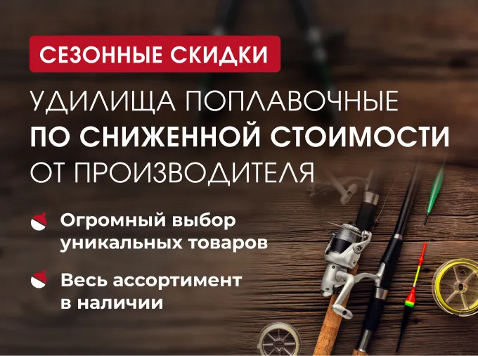 Компания «Улов» занимается продажей инвентаря для рыбалки по выгодным ценам. В наличии удилища поплавочные, предназначенные для ловли рыбы в малых и средних водоёмах. Поплавок, закреплённый на леске, служит индикатором поклёвки и определяет глубину погружения приманки.